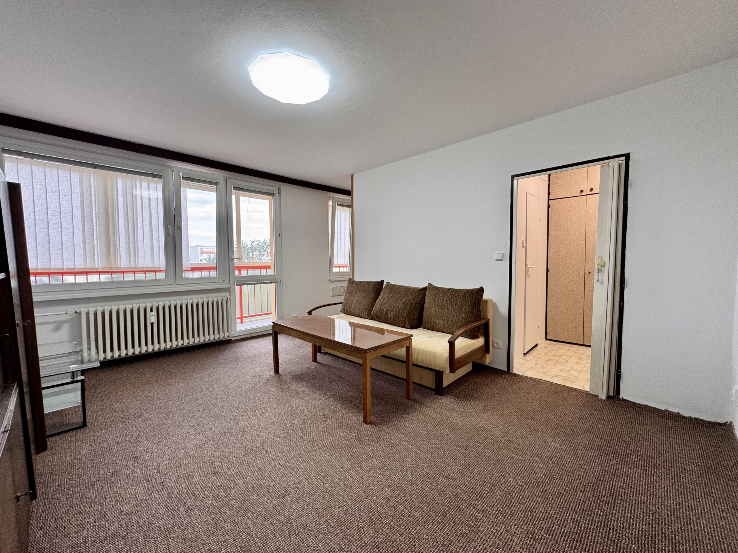 🏠 Dispozice: Garsoniéra, 38 m² s prostornou zasklenou lodžií se žaluziemi
