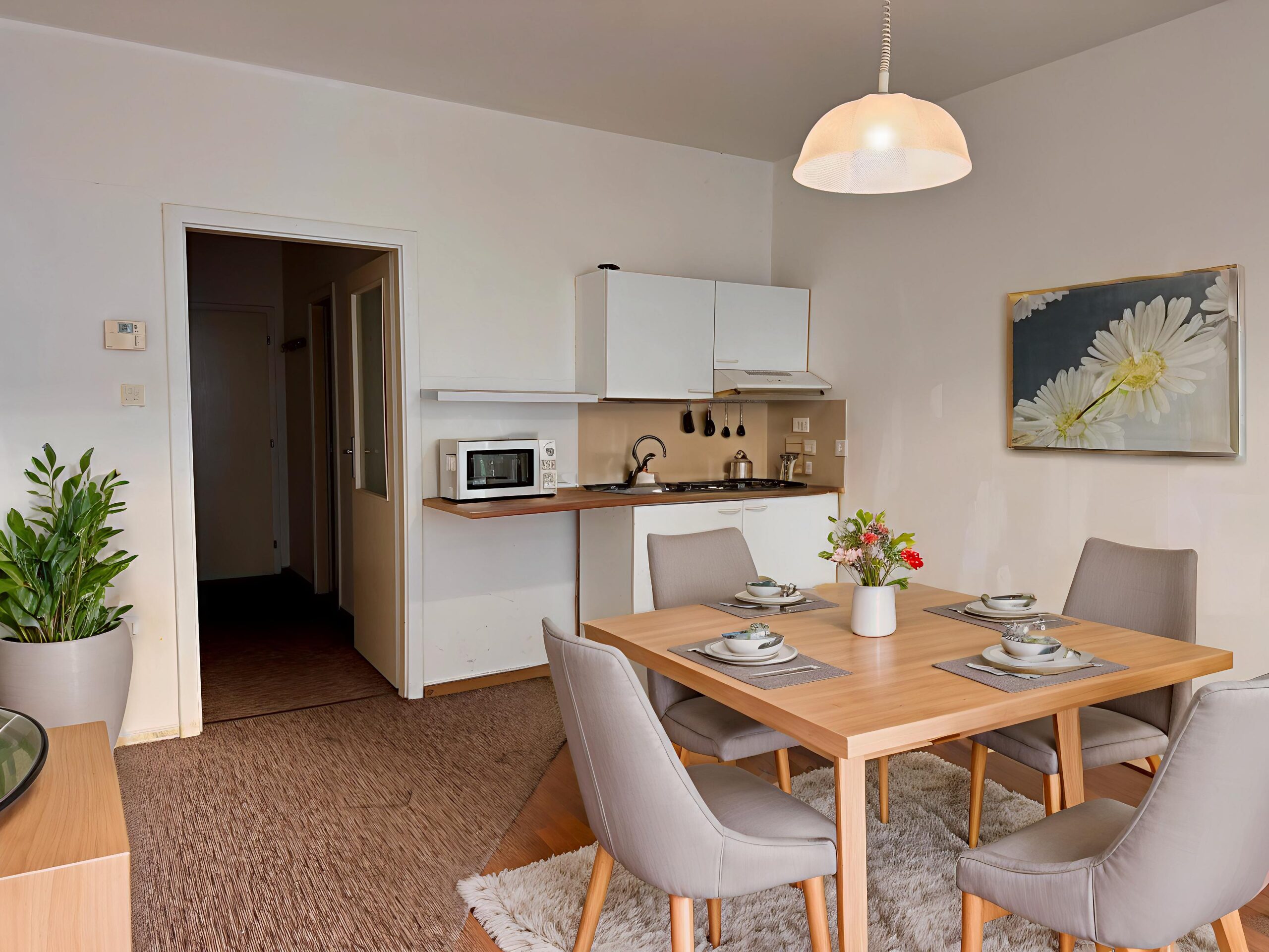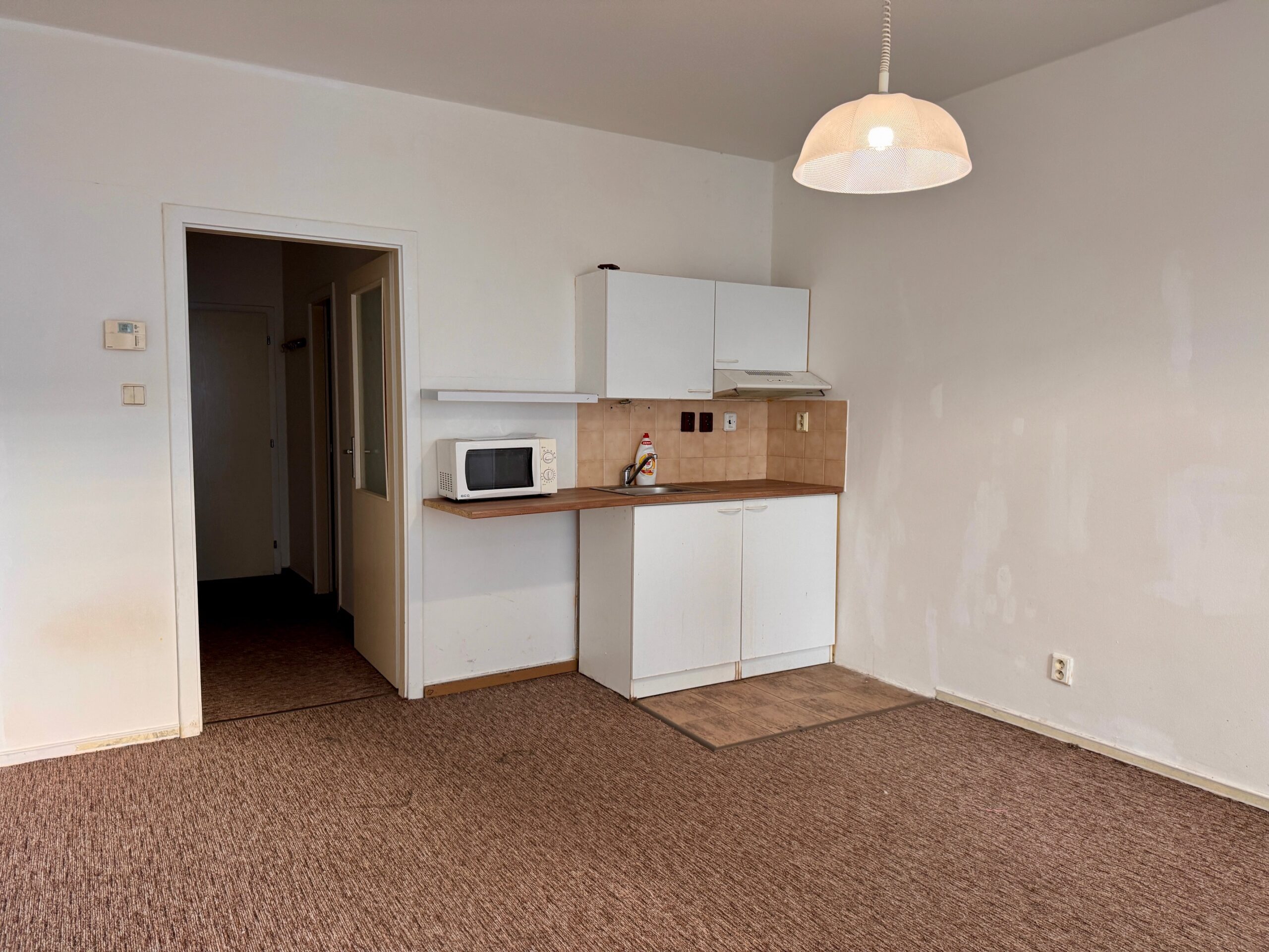 Součástí vybavení je vestavěná skříň v chodbě a menší kuchyňská linka. Z obývací části je vstup na balkon orientovaný na západní stranu, který poskytuje příjemné posezení.